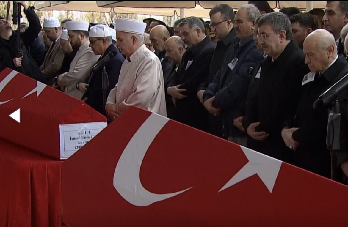 Postxronika.az Azərtac-a istinadən xəbər verir ki, Əhməd Hamdi Akseki məscidində təşkil olunan mərasimdə Türkiyənin dövlət rəsmiləri, o cümədən vitse-prezident Cevdet Yılmaz və Müdafiə Sənayesi İdarəsinin rəhbəri Haluk Görgün iştirak ediblər. Süleyman Cemre Kahraman və İsmayıl Enes Canın xatirəsinin yad edildiyi tədbirdə mərhumların yaxınlarına dərin hüznlə başsağlığı verilib.